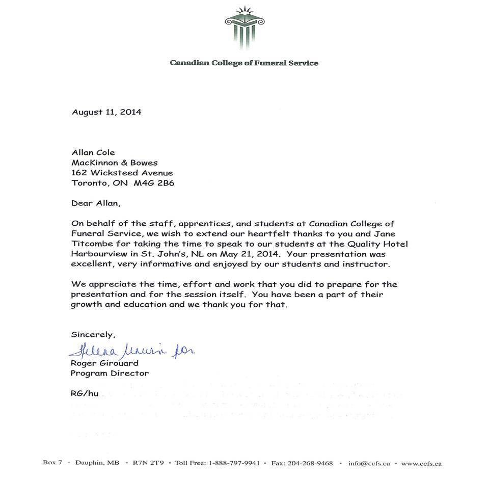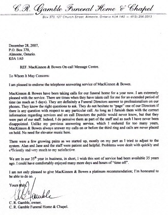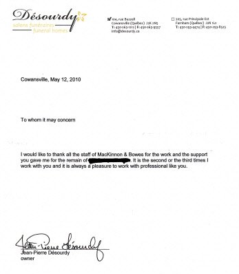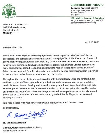 Testimonials & Letters of Thanks
