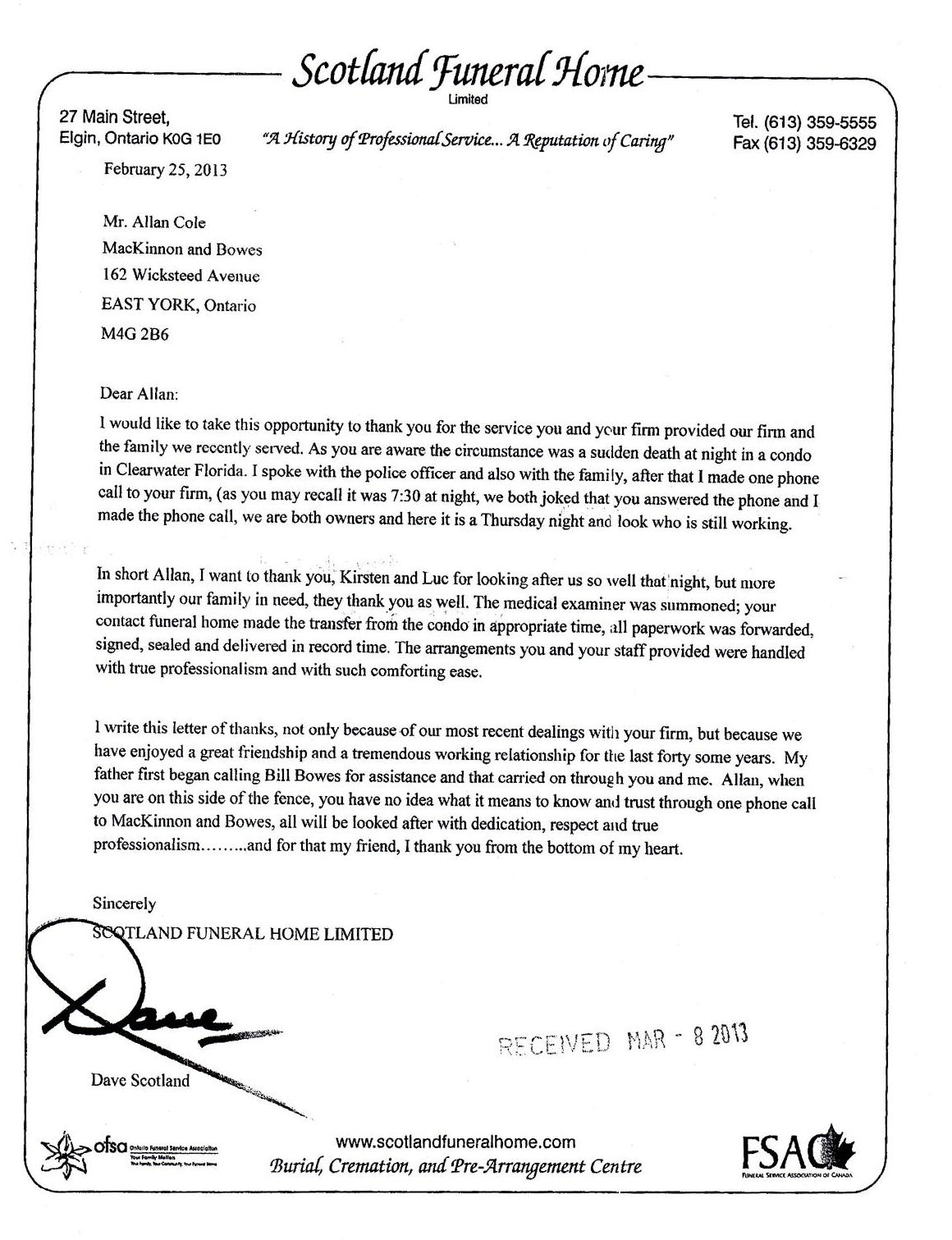 Click the images below to view the testimonial or letting or thanks.